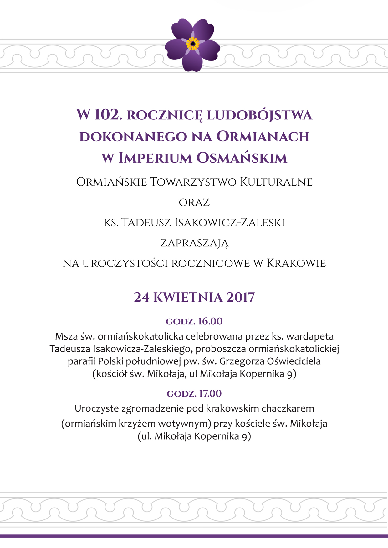 Prosimy o przekazanie Panu Prezydentowi naszych podziękowań za jego słowa, zrozumienie i życzliwość okazane Ormianom polskim.